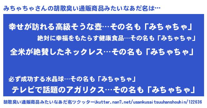 | 男性向けラノベタイトル風あだ名 | 『うちのみちゃちゃが世界を掌握している!』 |