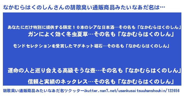 | 男性向けラノベタイトル風あだ名 | 『ノーゲーム・ノーナカムラハクノシン』 |