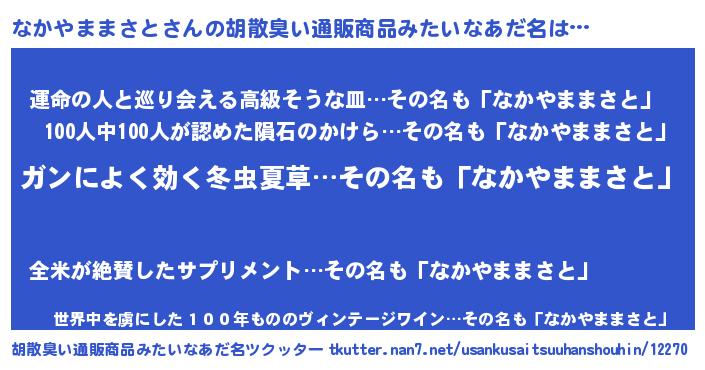 | 意味不明あだ名 | 『自称なかやままさと』 |