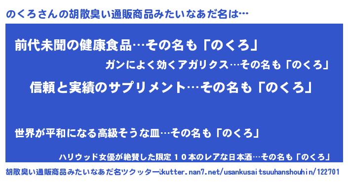| 意味不明あだ名 | 『とにかく怪しいのくろ』『自称のくろ』 |