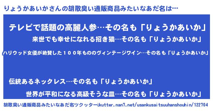 | 恥ずかしいあだ名 | 『リョウカアイカデラックス』『りょちん』 |