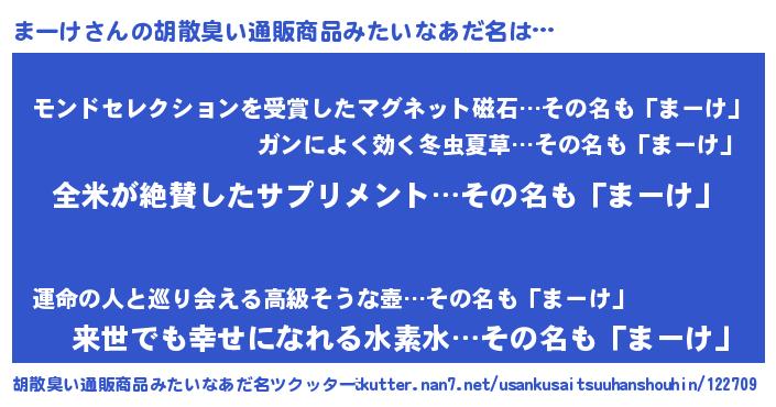 | ヒーロー風カッコイイあだ名 | 『天弓騎士マー』『慈愛の使者まーけ』 |