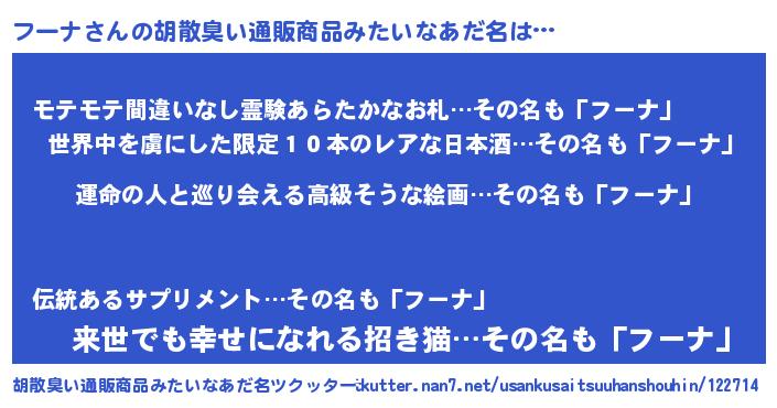 | ヒーロー風カッコイイあだ名 | 『ウルトラフーナマン』『スーパーフーナ』 |