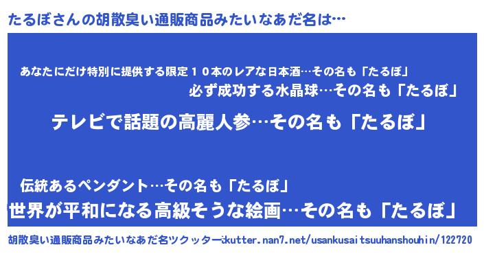| 意味不明あだ名 | 『自称たるぼ』『住所不定無職たるぼ(68歳)』 |