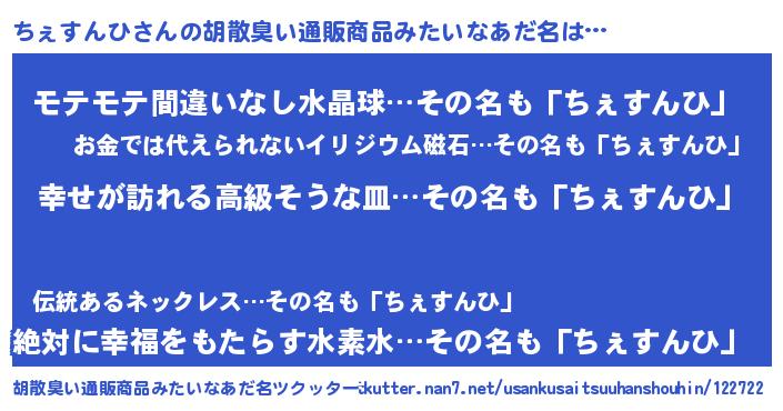 | 意味不明あだ名 | 『ちぇすんひフォーエバー』 |