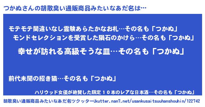| 女子向けラノベタイトル風あだ名 | 『つかぬの雑貨屋さん』 |