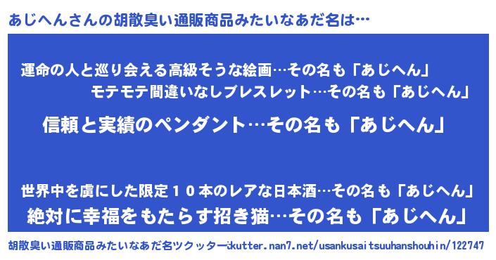| 意味不明あだ名 | 『とにかく怪しいあじへん』 |