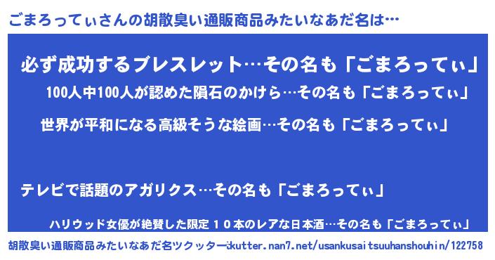 | 意味不明あだ名 | 『ごまろってぃフォーエバー』 |