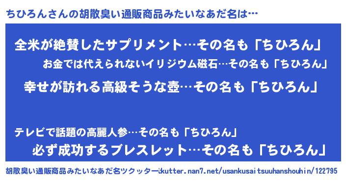 | 肩書あだ名 | 『ちひろん少将』『ちひろんディレクター』 |