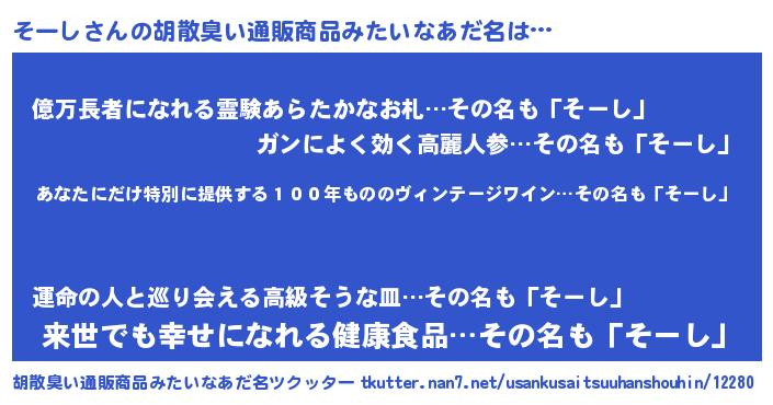 | 意味不明あだ名 | 『住所不定無職そーし(2歳)』『自称そーし』 |