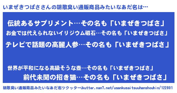 | 男性向けラノベタイトル風あだ名 | 『転生したらいまぜきつばさだった件』 |