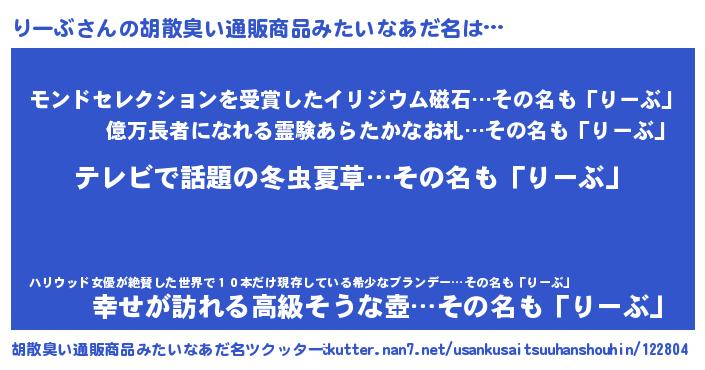 | ヘコむあだ名 | 『豆乳』『りーもー』『りーぶ(笑)』 |