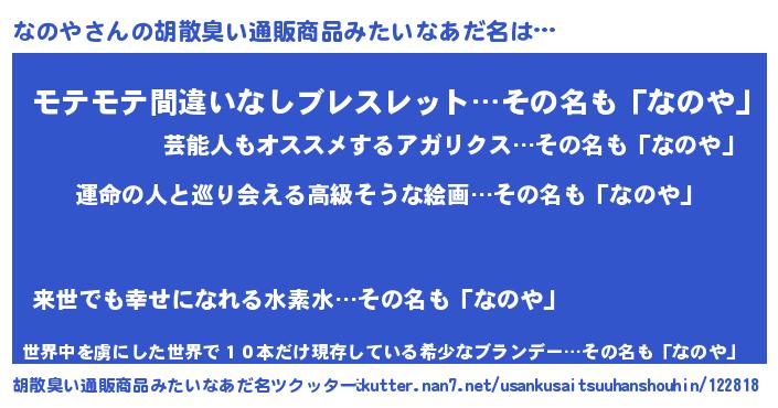 | 意味不明あだ名 | 『なのやフォーエバー』『ペロリンなのや』 |