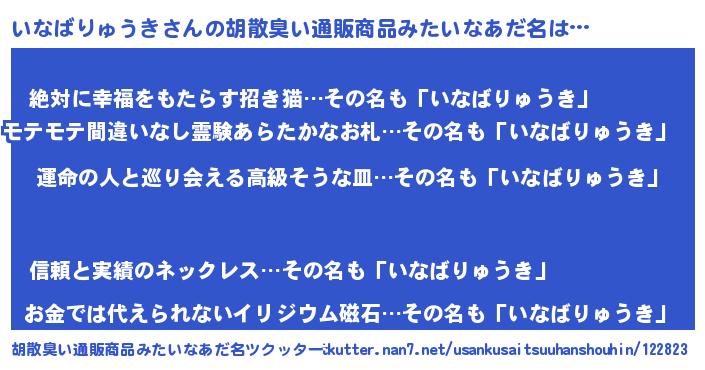 | 肩書あだ名 | 『いなばりゅうき国家主席』 |