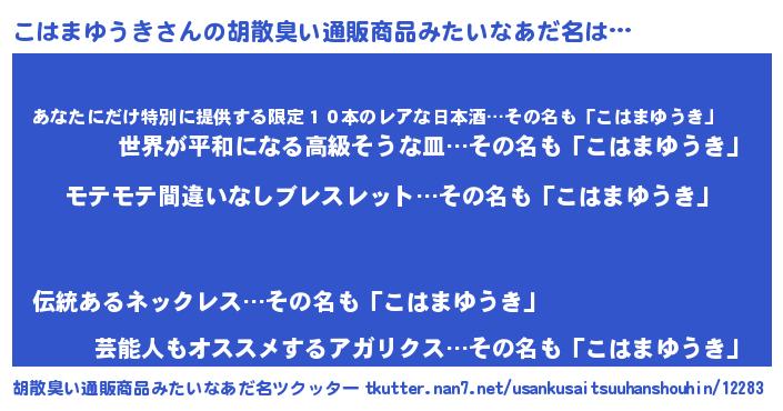 | 恥ずかしいあだ名 | 『プリティーこはまゆうき』『こはっちょ』 |