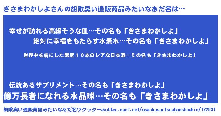 | ヘコむあだ名 | 『なまこ酢』『きさっふぃ~』 |