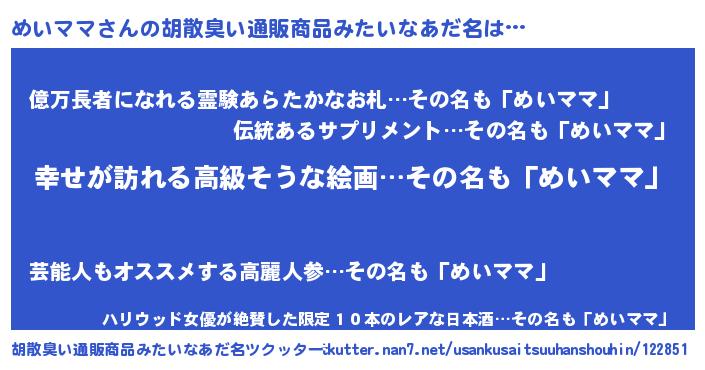 | 意味不明あだ名 | 『めいママフォーエバー』 |