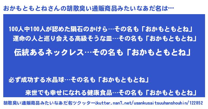 | 意味不明あだ名 | 『とにかく怪しいおかもともとね』 |