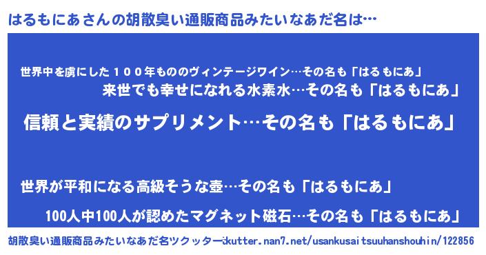 | 意味不明あだ名 | 『とにかく怪しいはるもにあ』 |