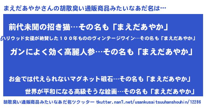 | 意味不明あだ名 | 『自称まえだあやか』 |