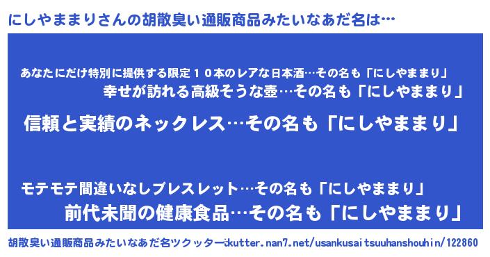 | 意味不明あだ名 | 『とにかく怪しいにしやままり』 |