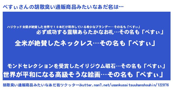 | 意味不明あだ名 | 『とにかく怪しいぺすぃ』 |