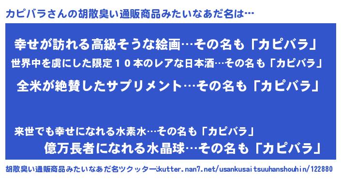 | ヒーロー風カッコイイあだ名 | 『幻影騎士カピ』『ウルトラカピバラマン』 |