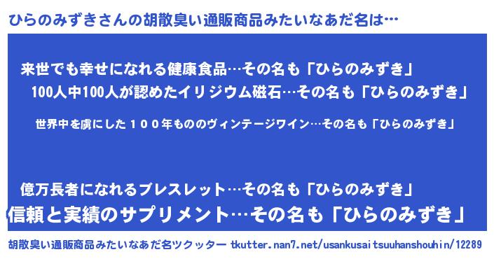 | 意味不明あだ名 | 『住所不定無職ひらのみずき(11歳)』 |