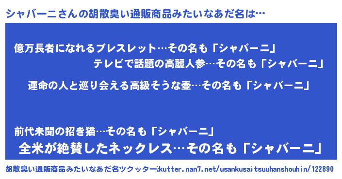 | 意味不明あだ名 | 『シャバーニフォーエバー』 |