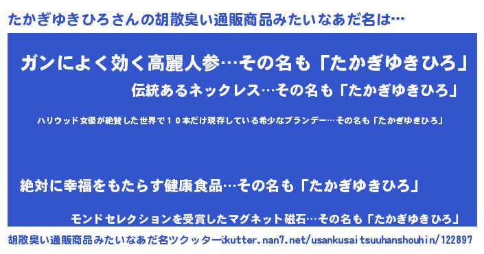 | ヘコむあだ名 | 『たかっちょ』『たかぎゆきひろ(笑)』 |