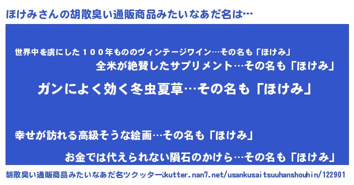 | ヒーロー風カッコイイあだ名 | 『ウルトラ戦士ホケミ』『仮面ホケダー』 |