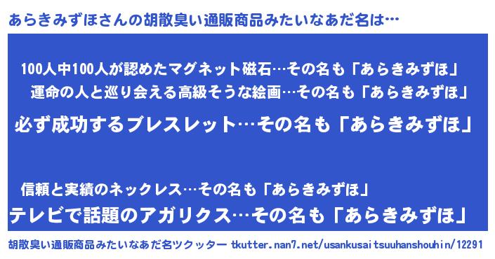 | ヒーロー風カッコイイあだ名 | 『スーパーアラキミズホ』『炎刃騎士アラ』 |