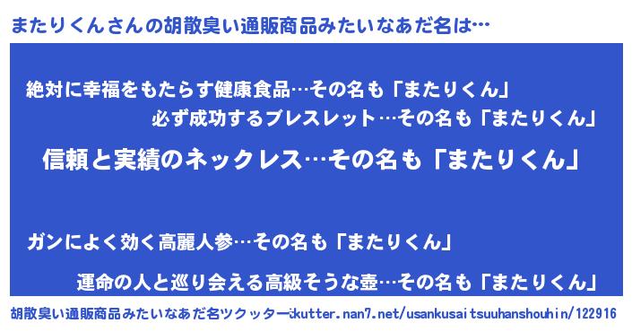 | ヘコむあだ名 | 『またっぺ』『またりくん(笑)』 |