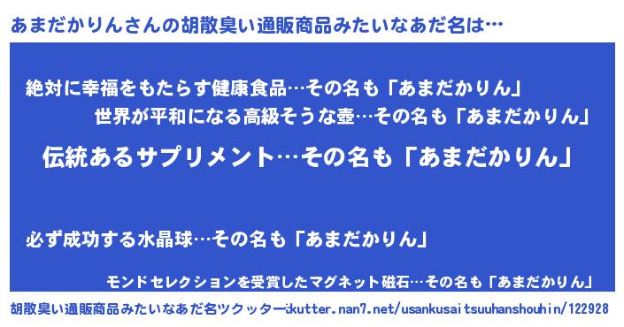 | ヘコむあだ名 | 『あまお』『あまだかりん(爆)』 |