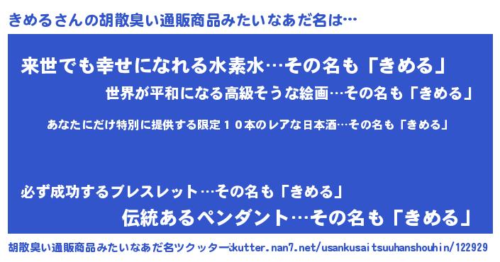| 意味不明あだ名 | 『住所不定無職きめる(43歳)』 |