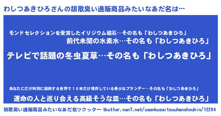 | 肩書あだ名 | 『わしつあきひろ総統』 |