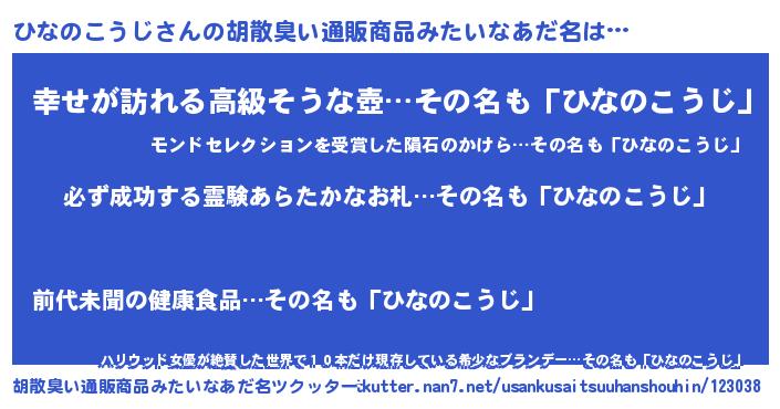ひなのこうじさんの胡散臭い通販商品みたいなあだ名をツクッター!