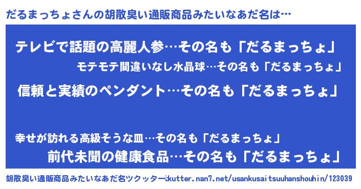| 意味不明あだ名 | 『とにかく怪しいだるまっちょ』 |