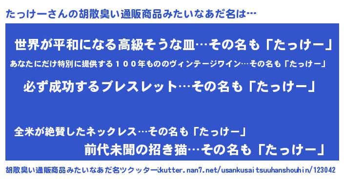 | 肩書あだ名 | 『たっけー中佐』『たっけー社長』 |