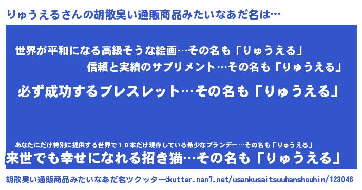 | 男性向けラノベタイトル風あだ名 | 『りゅうえるの憂鬱』 |