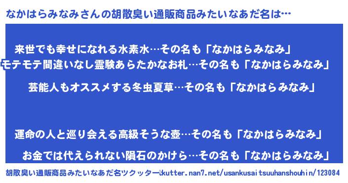 | 意味不明あだ名 | 『自称なかはらみなみ』 |