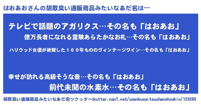 | 意味不明あだ名 | 『住所不定無職はおあお(6歳)』 |