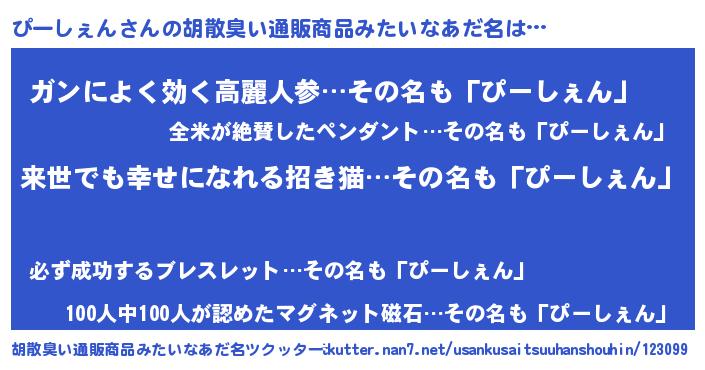| ヘコむあだ名 | 『ぴーしぇん(笑)』『ぴーっちょ』 |