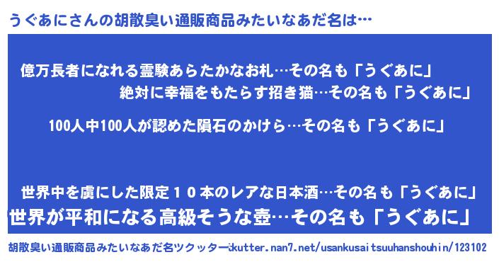 | 欧米人風あだ名 | 『ダニエルうぐあに』『マイケルうぐあに』 |