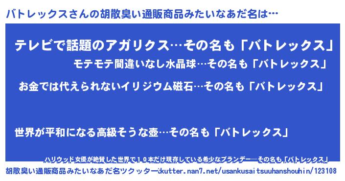 | ヘコむあだ名 | 『バトにゅー』『なまこ酢』 |