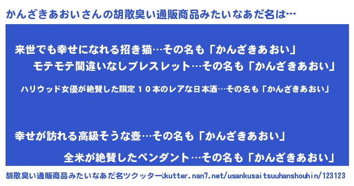 | 料理風あだ名 | 『かんざきあおいのカルパッチョ風』 |