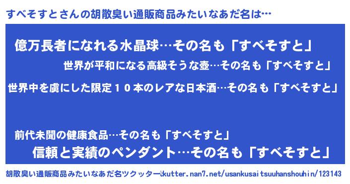 | 意味不明あだ名 | 『住所不定無職すべそすと(14歳)』 |