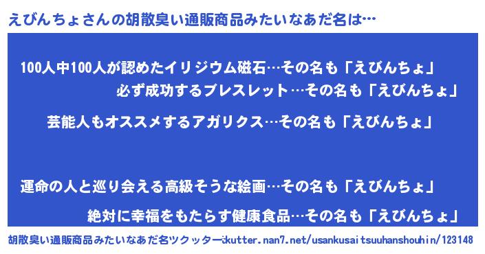 | ヘコむあだ名 | 『えびんちょ(笑)』『えびにゅー』 |
