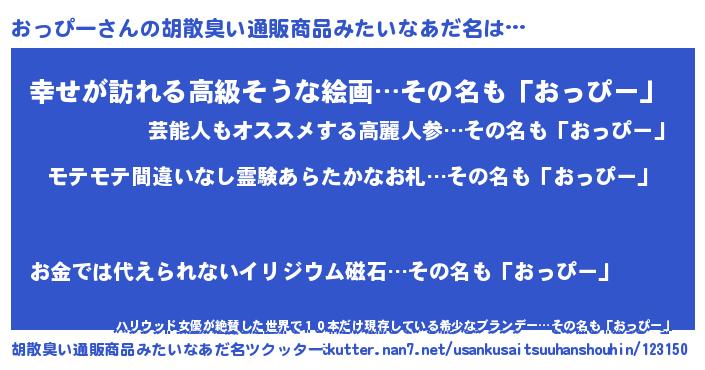 | 意味不明あだ名 | 『ペロリンおっぴー』『自称おっぴー』 |