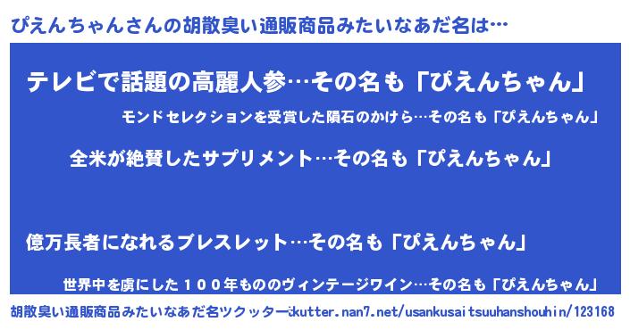 | 意味不明あだ名 | 『とにかく怪しいぴえんちゃん』 |